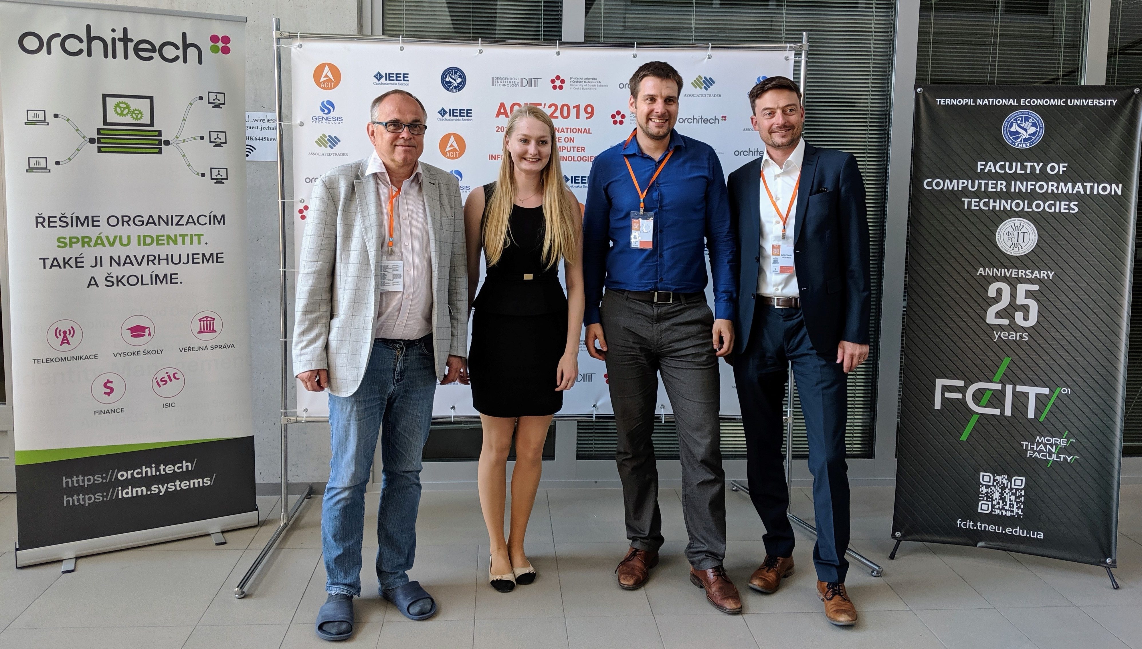 I letos byla naše firma partnerem mezinárodní konference ACIT (2019 9th International Conference on ADVANCED COMPUTER INFORMATION TECHNOLOGIES) konané v Českých Budějovicích ve dnech 5-7 června 2019. Prezentace účastníků proběhly netypicky během úvodního dne a až na druhý den, kdy se program konference přesunul na zámek do nedalekých Nových Hradů, byly plánované přednášky sponzorů a externích účastníků. Za Orchitech vystoupil Martin Čížek.