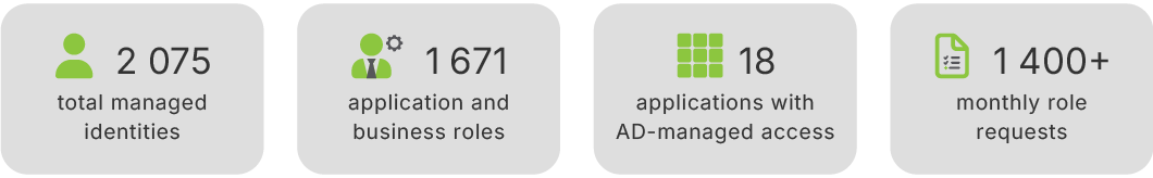 • Reduced error rates and IT workload through automated identity lifecycle management. Changes in HR data are reflected in AD, and when a contract ends, the system immediately revokes all associated permissions.